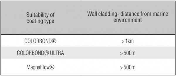 AvantaLine® wall cladding will give excellent durability in almost all locations. It is however important to choose the correct coating for each application environment as shown in the table below. Durability recommendations do vary based on the application of the product, in walling installations. Please read the table below carefully.