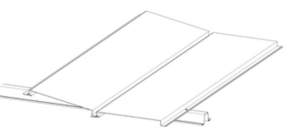 3. Carefully insert the trailing edge of the next sheet into the groove in the leading edge of the former sheet. Ensure a uniform gap of 15mm is maintained between the vertical upstands of the two sheets by using spacers or similar. Any variation in the gap will be visible, care must be taken to ensure it is uniform.