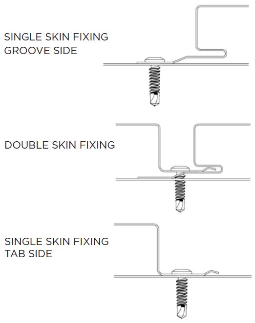 4. Fix the two sheets down with a single screw at each support, ensuring both layers are fixed down as indicated in double skin fixing diagram.