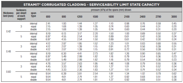 For more specific applications Stramit® Corrugated cladding must be designed to the pressure and foot traffic limits indicated.