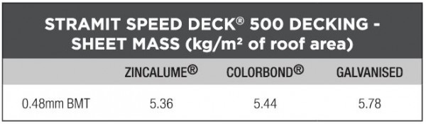 Stramit Speed Deck® 500 Concealed Fixed Decking is supplied cut to length. When designing or transporting long products ensure that the length is within the limit of the local Transport Authority regulations.